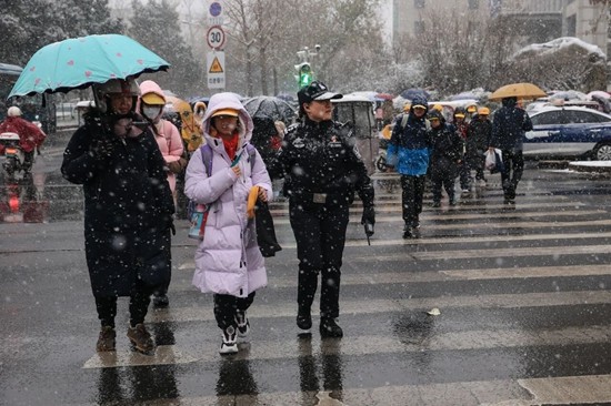 “小朋友慢点走,小心脚下路滑!”12月12日大雪过后,济南市公安局市中分局“金盾护学”民警牵着孩子们的小手穿过积雪路段,成为风雪中最安心的守护。全省公安机关以雪为令、迎风雪战严寒,将警力最大限度摆上街面,通过“定点值守+动态巡逻”“车巡+步巡”相结合的方式,让警灯常亮、警笛常鸣,让群众真切感受到警察就在身边、安全就在眼前。