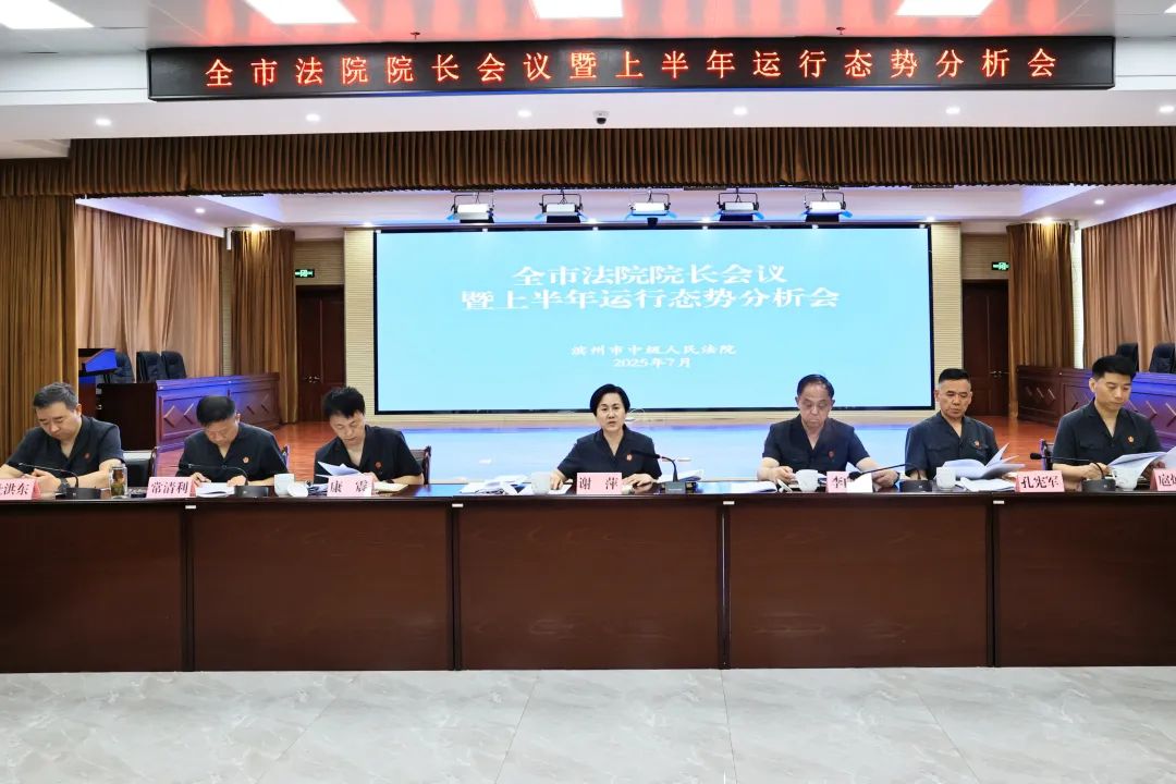 7月5日上午,滨州中院组织召开全市法院院长会议暨上半年运行态势分析会。会议通报了全市法院审判执行质效和工作情况,中院党组书记、院长谢萍出席会议并对下半年工作作出安排部署。