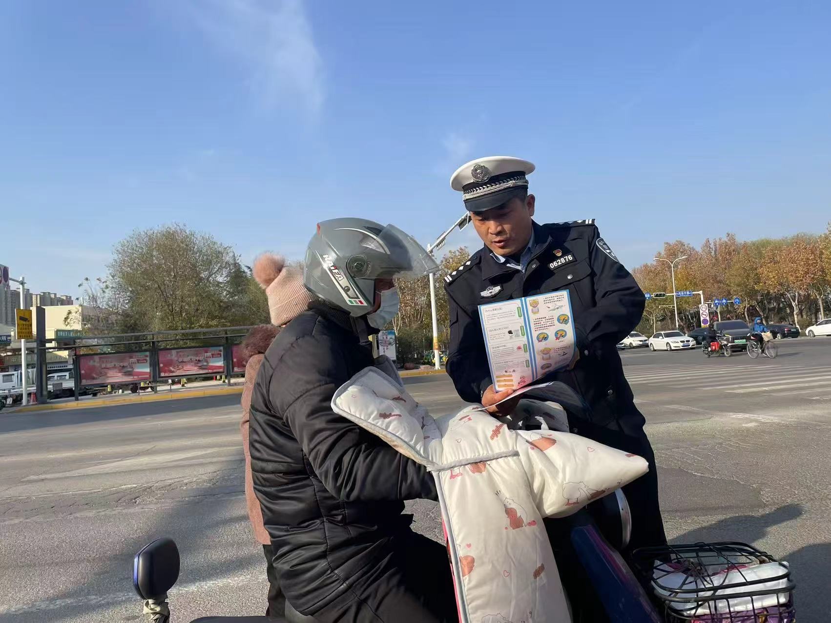 宣传过程中,民辅警紧紧围绕“文明交通 礼行天下”主题,在业务办理窗口、执法站、光彩大市场等人员密集场所摆放交通安全宣传展板,设置咨询台,向群众讲解交通法律法规和安全文明出行常识;到重点企业向企业负责人、驾驶人进行冬季行车安全知识宣传,倡导广大交通参与者自觉遵守交通法规,坚决杜绝闯红灯、酒后驾驶、疲劳驾驶等交通违法行为;组织警力走进辖区学校,利用通俗易懂的语言给孩子们详细讲解交通安全知识;联合镇政府利用赶集日开展宣传活动,与劝导员携手走上路面,向广大摊主商贩、前来赶集的群众发放交通安全宣传资料,通过面对面“拉家常”的方式,向群众讲解日常出行注意事项;积极主动协调辖区商场、沿街商铺,通过借助户外大屏、沿街商铺LED屏开展交通安全宣传“亮屏行动”,打造交通安全宣传教育阵地。