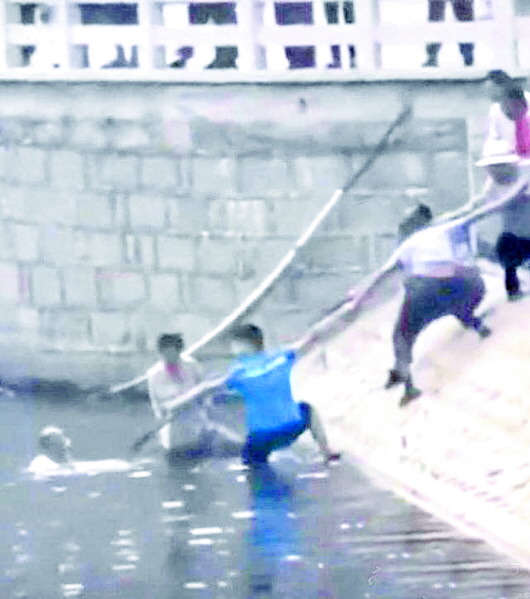 路遇男孩落水挺身施救