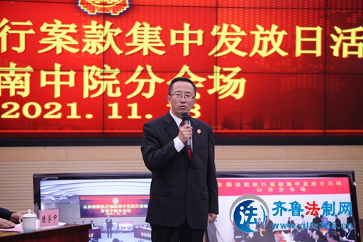 齐鲁法制网11月18日讯 上午10:30分,全国法院执行案款集中发放活动山东分会场在济南中院举行,现场向7起案件申请执行人集中发放执行到位的案款5.77亿元,主要为涉农民工工资、追索劳动报酬等民生案件。
