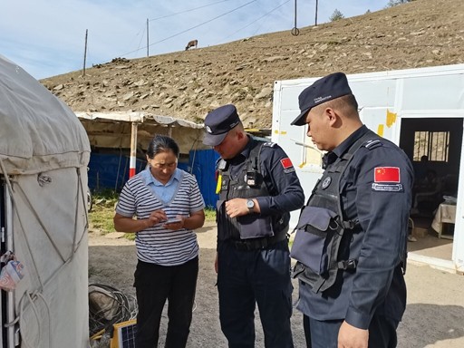 在草场边,民警向正在放牧的牧民明确禁牧休牧范围和违规责任,对放牧的牧民,明确告知“牛羊不能越界碑,转场要避开边境缓冲区”,举例说明误入管控区的后果;向日常活动靠近边境线的牧户,强调“发现陌生人员、可疑物品要第一时间报派出所”。