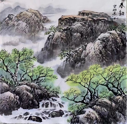 倾心观赏郑先生的每一幅作品,其画善皴。不勾不染,不点不擦,常用焦墨枯笔复沓钢打铁铸,仰写层峦俯作飞阁。写意高远为山,落笔墨痕为树。视觉之下一片耸翠苍郁,满纸蓬勃生机。他的山水作品鲜活至极,移步换景总是令人大爽大快!每一幅作品始终与山水、草木、石土、云霞为伍,并置喜怒哀乐笔墨铺陈之中,画以抒情,以画载道,幻化春夏秋冬,演绎人间万类。他的作品以高远、平远、深远叠加渲染着山的气势和水的韵致。层层推进,以致山原旷其盈视,川泽迂其骇瞩!远山以虚空笔法写空灵,遥遥无际,宁静辽远;近山骨法用笔应物象形,浓淡相宜变化多端,凸凹出山性的刚毅劲拔;石无半尺平,树无一寸直。错落生动,律美韵妙,成为山水亦有生命的眼目,在浑厚的肌体上熙熙闪烁,或青绿浅绛,或石青雌黄,点点滴滴随类赋彩,气韵生动,镶嵌了山林的精神;遥远雾气的茫茫朦胧,则蕴涵了梦境里的魔幻世界,万类生于有,有生之于无!在此之下,百尺悬瀑落深潭,激起令人遐想的哲学脉络:行到水穷处,坐看云起时……