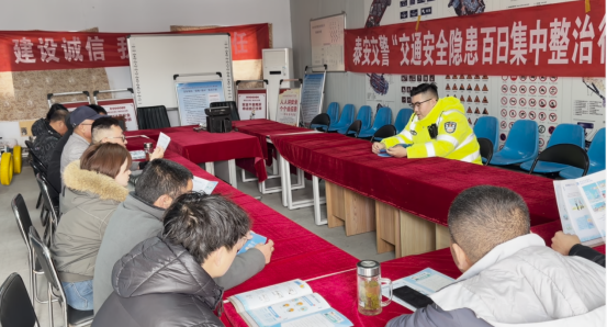 为扎实推进道路交通安全隐患百日集中整治行动,从驾驶员培养提升安全驾驶意识,12月19日,泰安交警城东大队组织宣传民警走进辖区岱东驾校,开展“交通安全隐患百日集中整治行动”主题宣传活动,为新驾驶人上好行车安全“第一课”。
